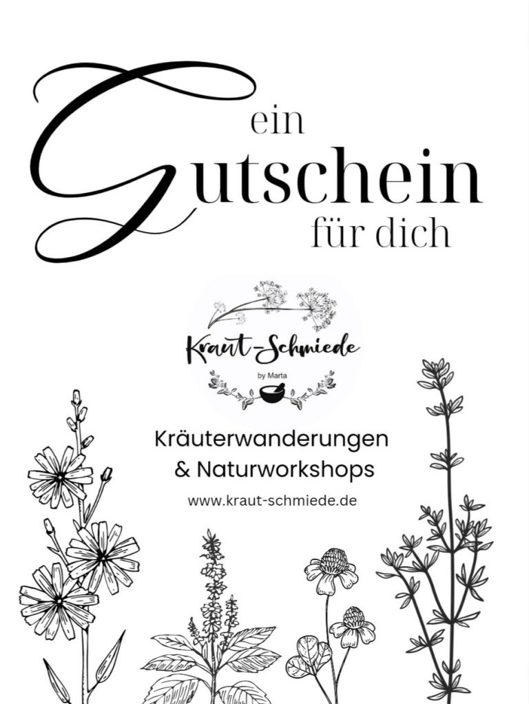 Ein Gutschein von der Kraut-Schmiede by Marta ist mehr als eine Aufmerksamkeit – er ist eine Einladung zum Innehalten, Durchatmen und Eintauchen in die Welt der Wildkräuter.